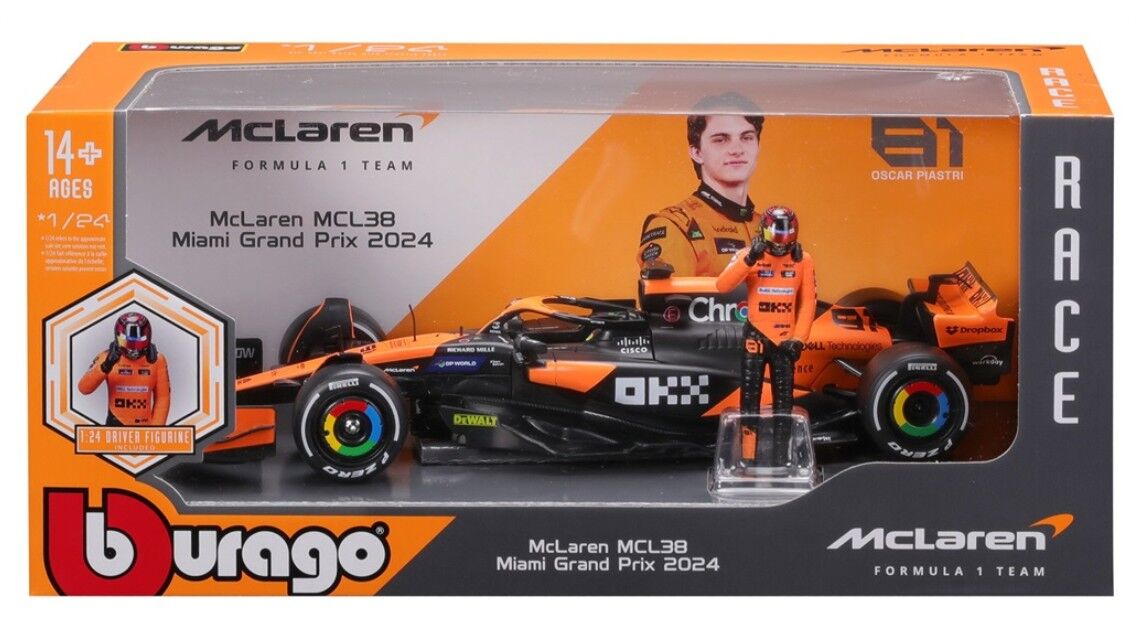 Bburago 1/24 2024 McLaren MCL38 F-1 with Piastri Driver Figure #81 in WB