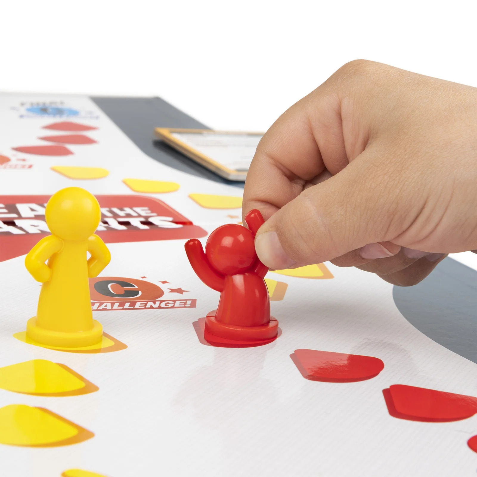 Beat the Parents is the family showdown game where kids compete against their parents for household supremacy! There are more than just bragging rights at stake – each team must pick a wager before the game can begin. What are you willing to do if you lose? Wash the dishes? Treat the other side to movie night? Use the dry erase marker and wager board to put the stakes on display, and then start the competition! Each team reads trivia questions about their generation to the other side, moving their pawn on the board with every successful answer. Reach a Challenge space, and compete team vs team in crazy, up-and-active challenge. Make it to the end of the board first and complete one final challenge to be crowned the winners – and enjoy the wager you’ve just won! This family game night, the stakes have never been higher – or more fun! For 2 to 6 players, ages 8 and up.