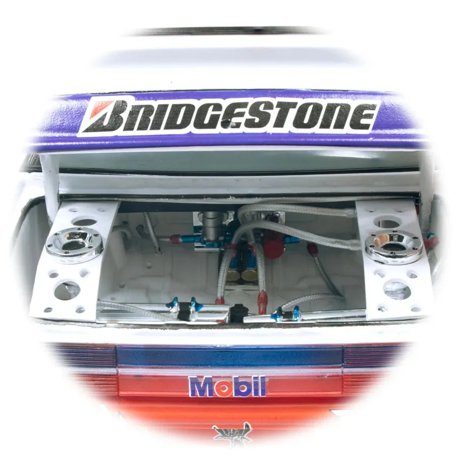 This fully opening diecast model captures every detail of Brock’s 1987 challenger. From the intricately replicated race-spec Holden V8 engine under the bonnet to the stripped-out race interior complete with roll cage, harness, race seat, and a detailed fuel system in the boot—this is an authentically crafted tribute to a golden age of Aussie touring car racing.