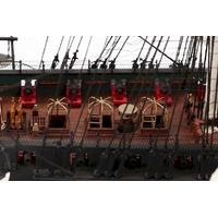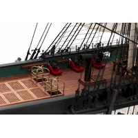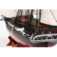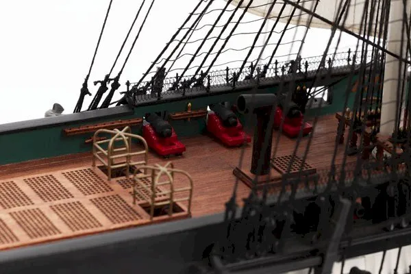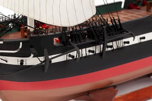 USS Constitution is a wooden-hulled, three-masted heavy frigate of the United States Navy. Named by President George Washington after the Constitution of the United States of America, she is the world's oldest floating commissioned naval vessel.[Note 1] Launched in 1797, Constitution was one of six original frigates authorized for construction by the Naval Act of 1794. Joshua Humphreys designed the frigates to be the young Navy's capital ships, and so Constitution and her sisters were larger and more heavily armed and built than standard frigates of the period. Built in Boston, Massachusetts at Edmund Hartt's shipyard, her first duties with the newly formed United States Navy were to provide protection for American merchant shipping during the Quasi-War with France and to defeat the Barbary pirates in the First Barbary War.