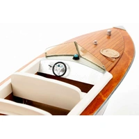 A Classic American runabout from the mid-1920s. This type of boat was mainly used as racing boats, but in some cases also as tenders, for those who had a lager yacht. Racing boats from that time was build in beautiful classic materials such as teak and mahogany. If you had a 100-150 hp engine back then, you had one of the most powerful engines. The model is based on a fast 34 foot tender.