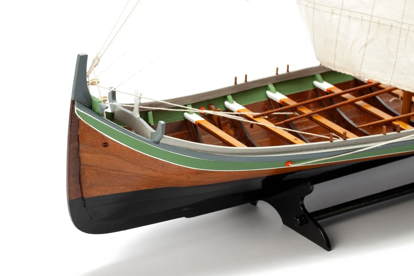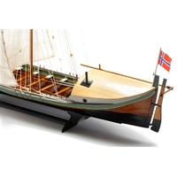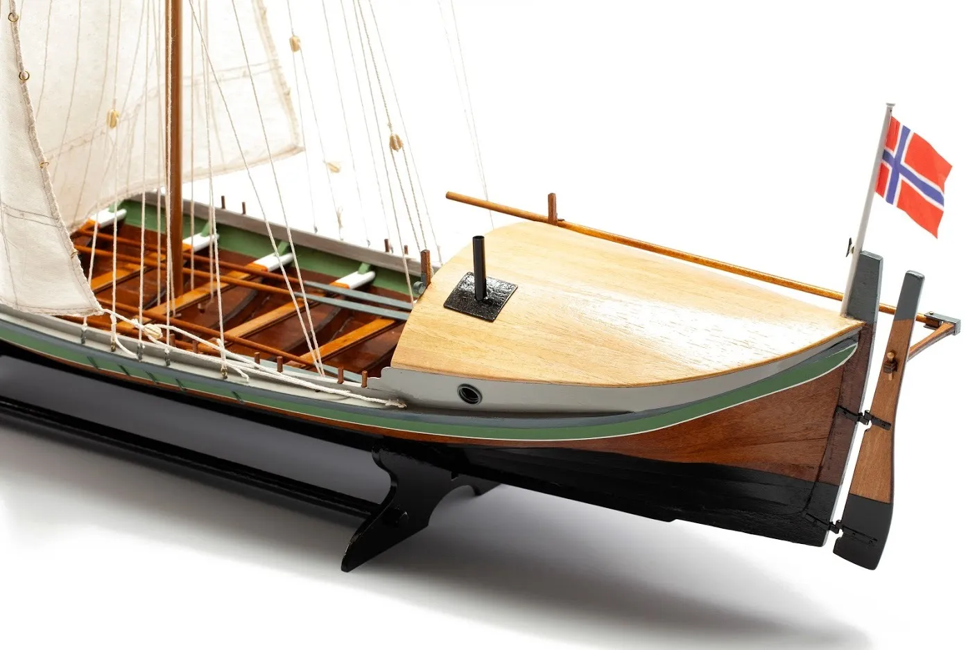 This type of boat, from Northern Norway, dates from the 17th Century. As a fishing boat it saw its most popular days from the 18th Century until the appearance of engine-driven fishing boats.These boats were extremely efficient and seaworthy. They represent a shipping culture and form which originates from the days of the Vikings. The boats are still built today, and they compete in races and regattas along the Northern coasts.