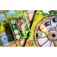 Uwe Rosenberg’s legendary resource wheels are making once again making their presence, made famous in Glass Road (2013). Black Forest continues the story - as the name suggests — in the Black Forest. Among others, the main difference between the two games is the the action selection (Worker Placement/Black Forest vs. Simultaneous Action Selection/Glass Road).