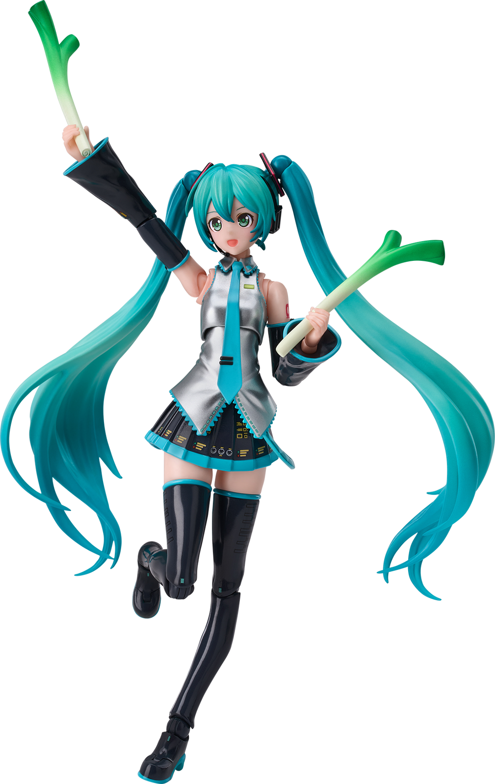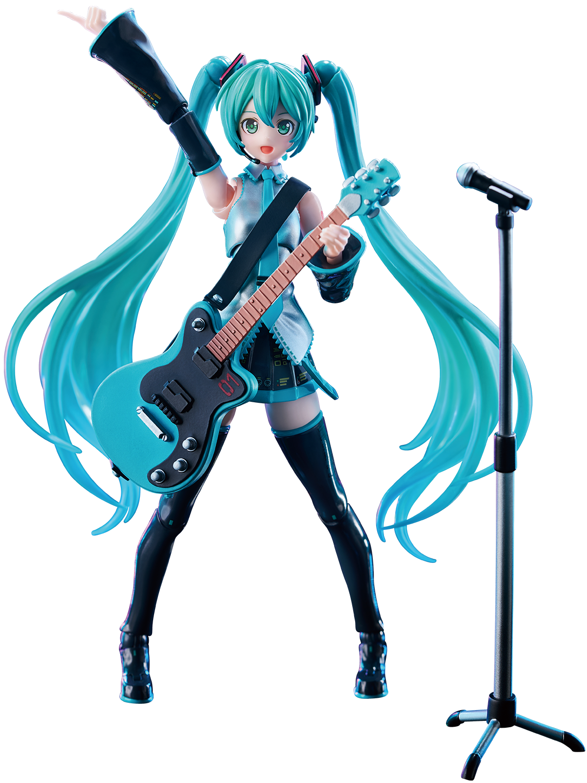 Bring home the officially licensed Hatsune Miku Official Outfit, a beginner-friendly model kit that requires no tools to assemble. Simply snap together and start creating! Change her expressions easily with 3 printed faces, 3 blank faces, and 4 expression stickers. Set up amazing music scenes using the complete accessory set - microphone, keyboard, guitar and leeks.