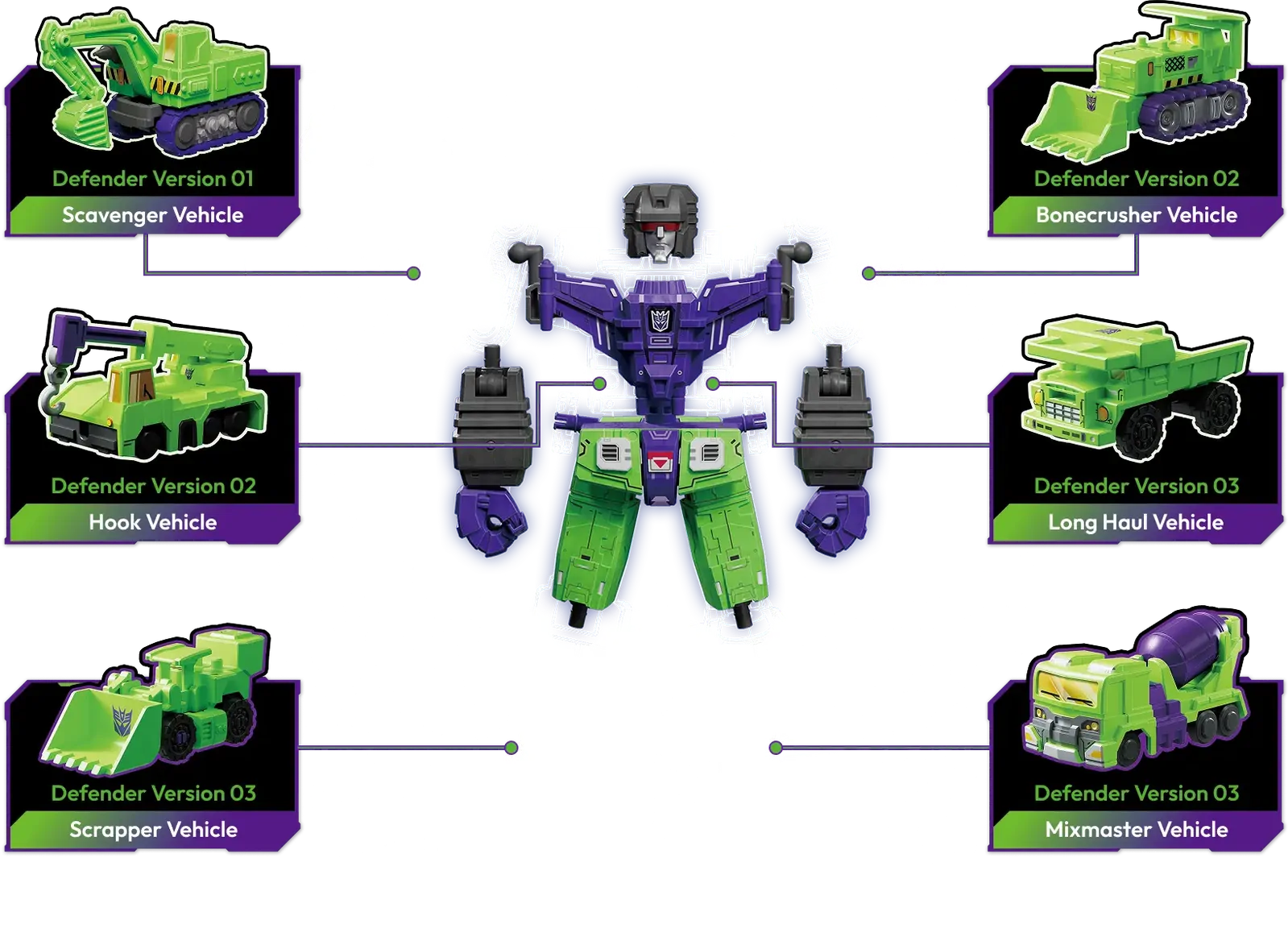 Assemble the ultimate Devastator with this official 28-piece combining accessory kit! Transform your Defender Version construction vehicles into one massive robot warrior. This authentic Transformers set includes everything you need: combining parts, step-by-step instructions, and exclusive collector's card.