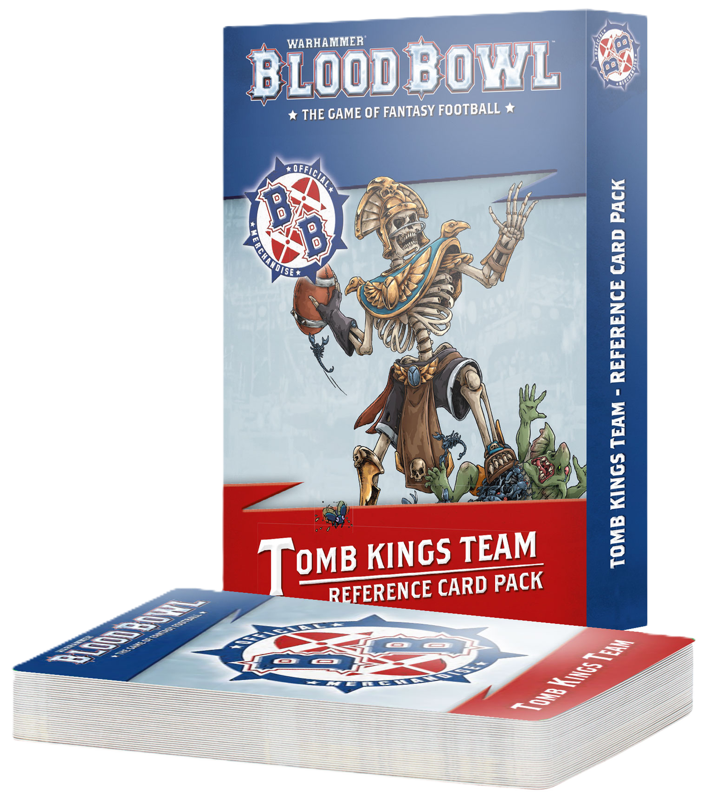 This set of 26 cards will help you keep track of your Tomb Kings team in games of Blood Bowl. There are individual cards for your players, skill reference cards, and special rules cards for Tomb Kings balls and pitches. They are an ideal way to easily check key information in the middle of a match while the crowd cheers and crunching blocks fly. There are also 16 blank Player reference cards, allowing you to track the development of your team during league play.