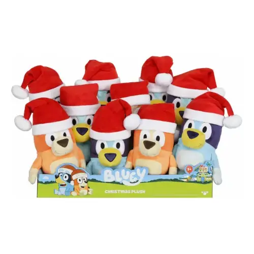 Bluey and Bingo are ready to celebrate the holiday season! Bring the fun and imaginative play home with these Bluey Christmas plush toys! At 20cm tall Festive Bluey and Festive Bingo are the perfect gift for all lovers of Bluey to find wrapped under the Christmas tree! Made with deluxe fabrics and featuring embroidered details, these super-soft plush toys double as a cuddly toy for showtime or storytime. Make Bluey and Bingo your kid's holiday companion! Collect all of Bluey's plush friends so they can create their own Bluey adventures.