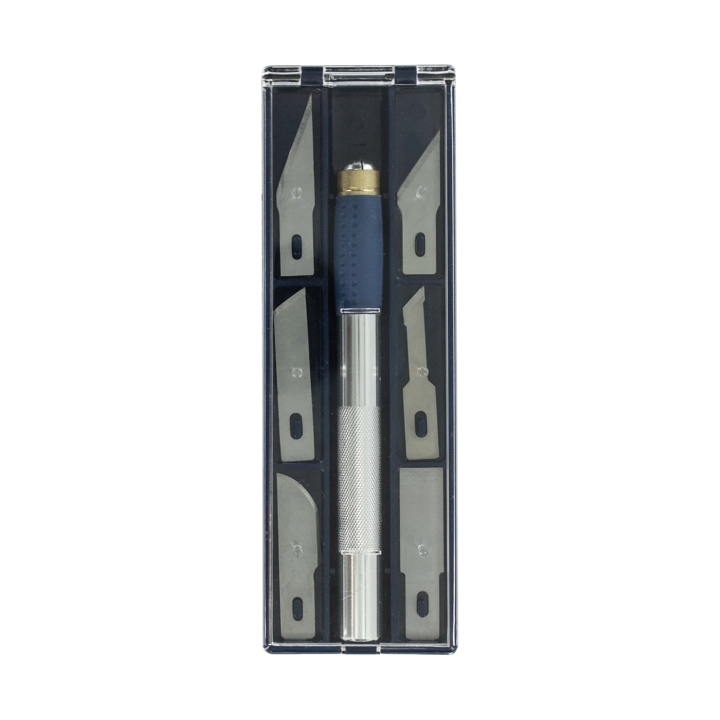 This 7 piece set includes: Quality No.2 handle with inbuilt soft comfort grip, Magnetic end for picking up blades or other metal components, 6 various useful blades, Storage case, For cutting out shapes in paper, card, foil and decals, Ideal for scrap booking, paper craft general craft & hobby tasks.