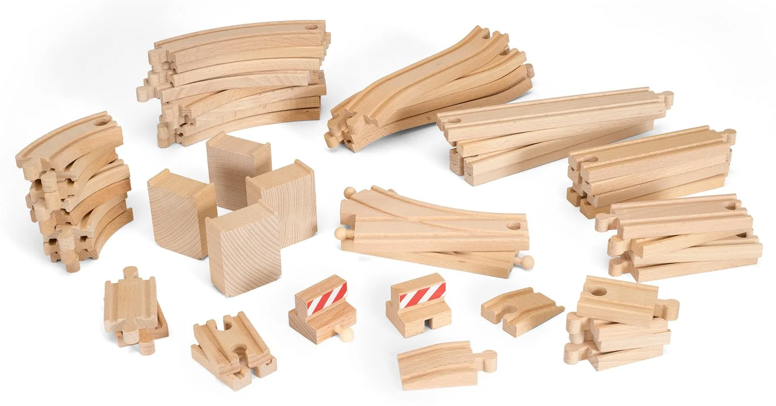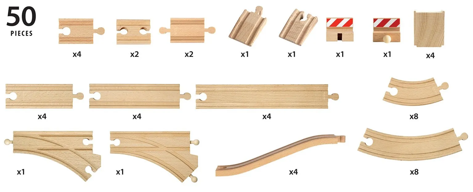 Perfect for the creative toddler - Expand your budding engineer's collection with this amazing 50 piece expansion pack wooden train track accessory. A perfect expansion to extend and create new layouts. This item includes: - 8x short curved track - 8x long curved tracks - 4x long straight tracks - 4x medium straight tracks - 4x short straight tracks - 8x straight mini tracks - 2x curved switches - 2x puffer stop - 2x ramp - 4x bridge pillars - 4x ramp tracks A perfect toy for Children 3 Years and up. Fully complies with all necessary UK and EU testing standards. BRIO Trains, Engines, Wagons, Carriages, and Vehicles feature the classic BRIO magnetic couplings for easily hook up! All train sets, rails, accessories and destinations feature the classic wooden train track allowing for easy connection to each other and expand your own BRIO World. BRIO My First Railway range is suitable for ages 24 Months and up and make ideal gifts for boys and great gifts for girls. We know that children sometimes play with toys in other ways than expected. That’s why we test our products thoroughly to our strict safety requirements which in many cases are tougher than the legal requirements. BRIO Railway Sets make a great birthday gift or smashing Christmas gift. No warnings required.