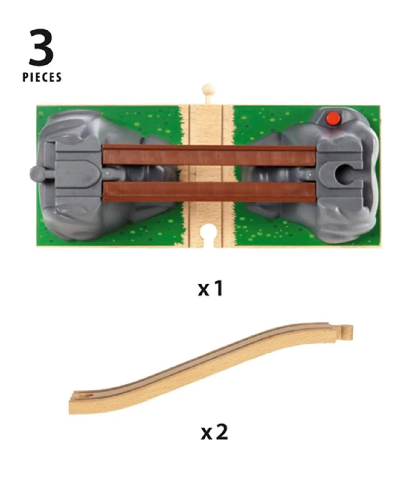 Ready, set, Go! The train comes closer and closer to the bridge unaware that it unsafe and about to collapse. Disaster. Now no trains can pass until the bridge has been rebuilt again. Simply press the red button to make the bridge collapse over and over. You will have some nervous passengers. This item includes: - 1x Collapsing Bridge - 2x Ascending tracks Measures 66.7 x 12.5 x 7.7cm BRIO Trains, Engines, Wagons, Carriages, and Vehicles feature the classic BRIO magnetic couplingsfor easily hook up! All train sets, rails, accessories and destinations feature the classic wooden train track allowing for easy connection to each other and expand your own BRIO World. Crafted using FSC sourced European beech wood and high-quality plastics the BRIO World railway range is suitable for ages 3 Years and up and make ideal gifts for boys and great gifts for girls. We know that children sometimes play with toys in other ways than expected. That’s why we test our products thoroughly to our strict safety requirements which in many cases are tougher than the legal requirements. BRIO Railway Sets make a great birthday gift or smashing Christmas gift. No warnings required.