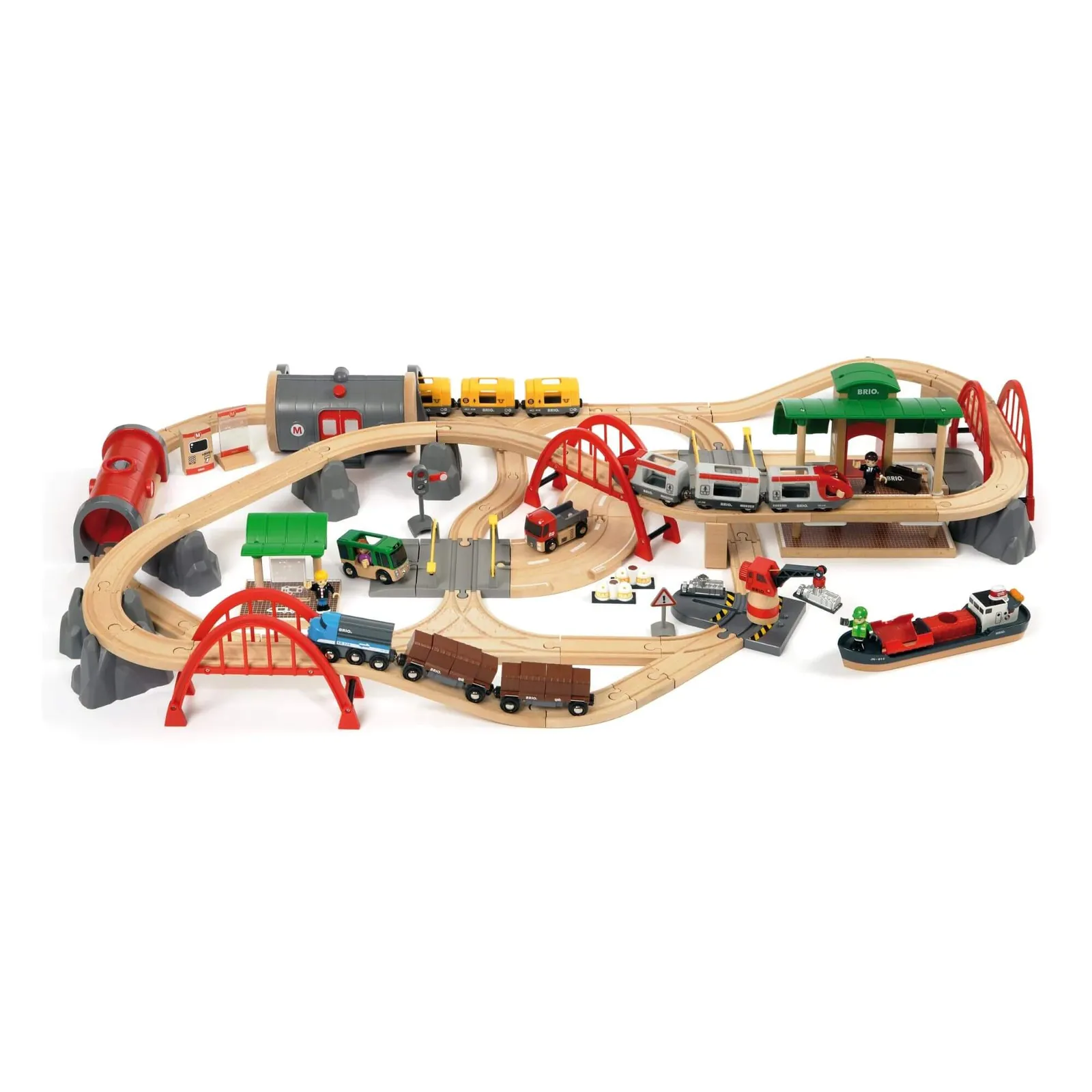 Brio Train Sets: Deluxe Railway Set (87 Pieces) The Ultimate BRIO World Rail and Road Adventure — All in One Box! Discover the BRIO – Deluxe Railway Set (87 pieces) — the ultimate BRIO World rail and road set that brings endless fun and imaginative play for children aged 3 and up , suitable for various age groups, especially toddlers and preschoolers. This complete railway set is a favourite choice among Australian families looking for high-quality BRIO train sets and wooden toys that last. Explore the Complete BRIO World Experience This impressive 87-piece railway set includes everything needed for a dynamic play world: Passenger trains and Metro scenes with a battery-powered Metro Train that lights up and makes sounds as it moves Freight trains and a busy harbour area with various cranes for lifting and loading cargo onto ships Metro Station , tunnels, bridges , trestles, working safety gates at railway crossings, and realistic road sections Detailed figures , stations , and accessories for rich storytelling and interactive play Comprehensive rail tracks that allow for expansive and imaginative play environments Children can pick up passengers from the platform and drive through the bright red Metro Tunnel, cross rocky cliffs, or shift into cargo mode—unloading freight at the harbor and using the tracks to navigate various scenarios with trucks to continue the journey off-track. Why This BRIO Railway Set is a Must-Have Complete BRIO World Toy Set : Perfect for building out your BRIO World collection High-Quality Craftsmanship : Made from FSC-certified European beech wood Sound and Light Action : Battery-operated Metro train makes playtime come alive Educational Value : Boosts creativity , problem-solving, and hand-eye coordination in young children Grows With Your Child : Fully compatible with all BRIO World train sets and most wooden track brands Great Gift Example : Ideal for birthdays, holidays, or anytime you want to add a wow factor Whether your child loves city scenes , stations , or imaginative play with vehicles, this railway set offers hours of fun . Let their creativity grow with every piece they add. Shop BRIO train sets in Australia now and experience why BRIO World toys continue to delight children for generations. Fast delivery, quality you can trust, and hours of non-stop action await! Important Safety Note: Contains a button battery . Keep new and used batteries away from children . Swallowing or inserting a battery can cause serious injury. Seek immediate medical attention if swallowed.