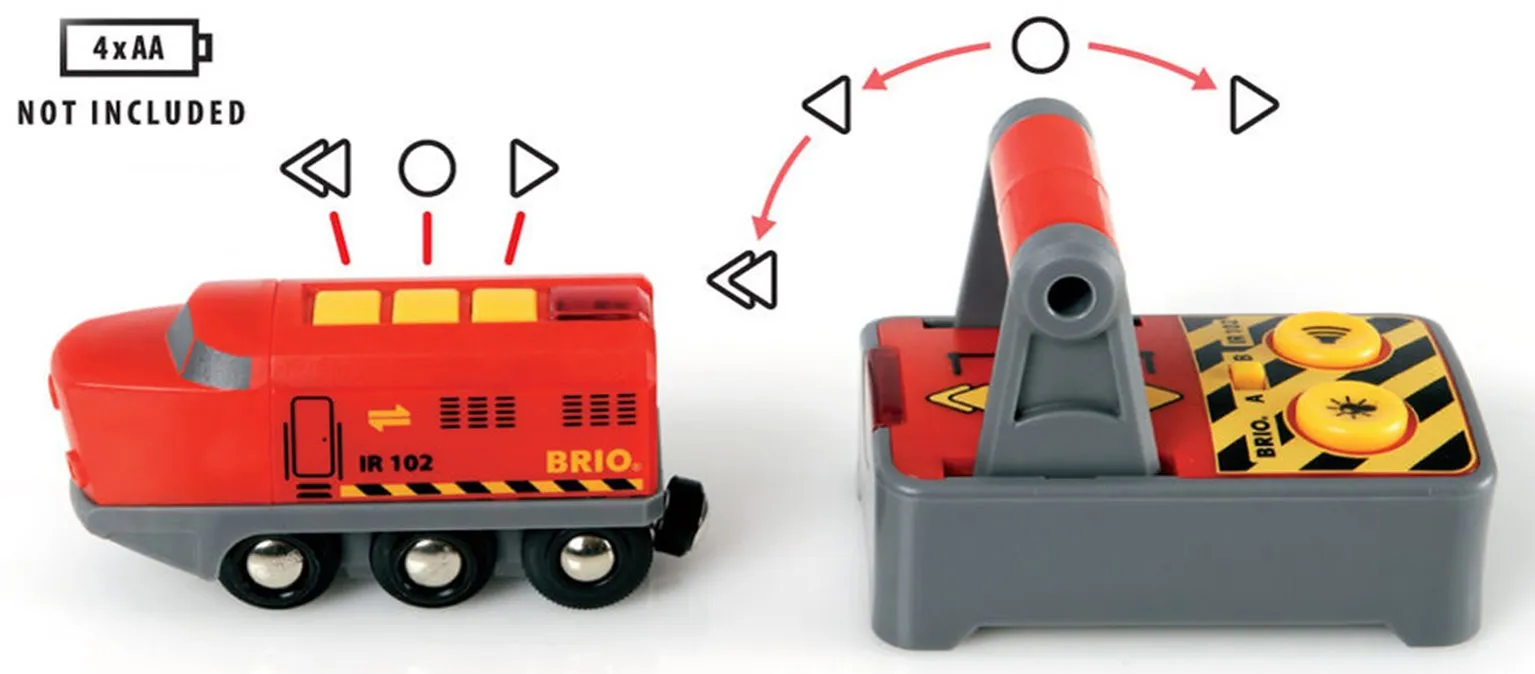 Take Control! This is the Remote Control Train Engine that will follow your every command. The unique controller has easy to use reverse and stop functions as well as two forward functions. Press the buttons for light and sound effects. The train is also controllable with buttons on engine. This item includes: - 1x Remote Control - 1 x Train Measures 10.5 x 3.5 x 5cm BRIO World railway range is suitable for ages 3 Years and up and make ideal gifts for boys and great gifts for girls. BRIO Trains, Engines, Wagons, Carriages, and Vehicles feature the classic BRIO magnetic couplingsfor easily hook up! All train sets, rails, accessories and destinations feature the classic wooden train track allowing for easy connection to each other and expand your own BRIO World. BRIO My First Railway range is suitable for ages 24 Months and up and make ideal gifts for boys and great gifts for girls. We know that children sometimes play with toys in other ways than expected. That’s why we test our products thoroughly to our strict safety requirements which in many cases are tougher than the legal requirements. BRIO Railway Sets make a great birthday gift or smashing Christmas gift. No warnings required.