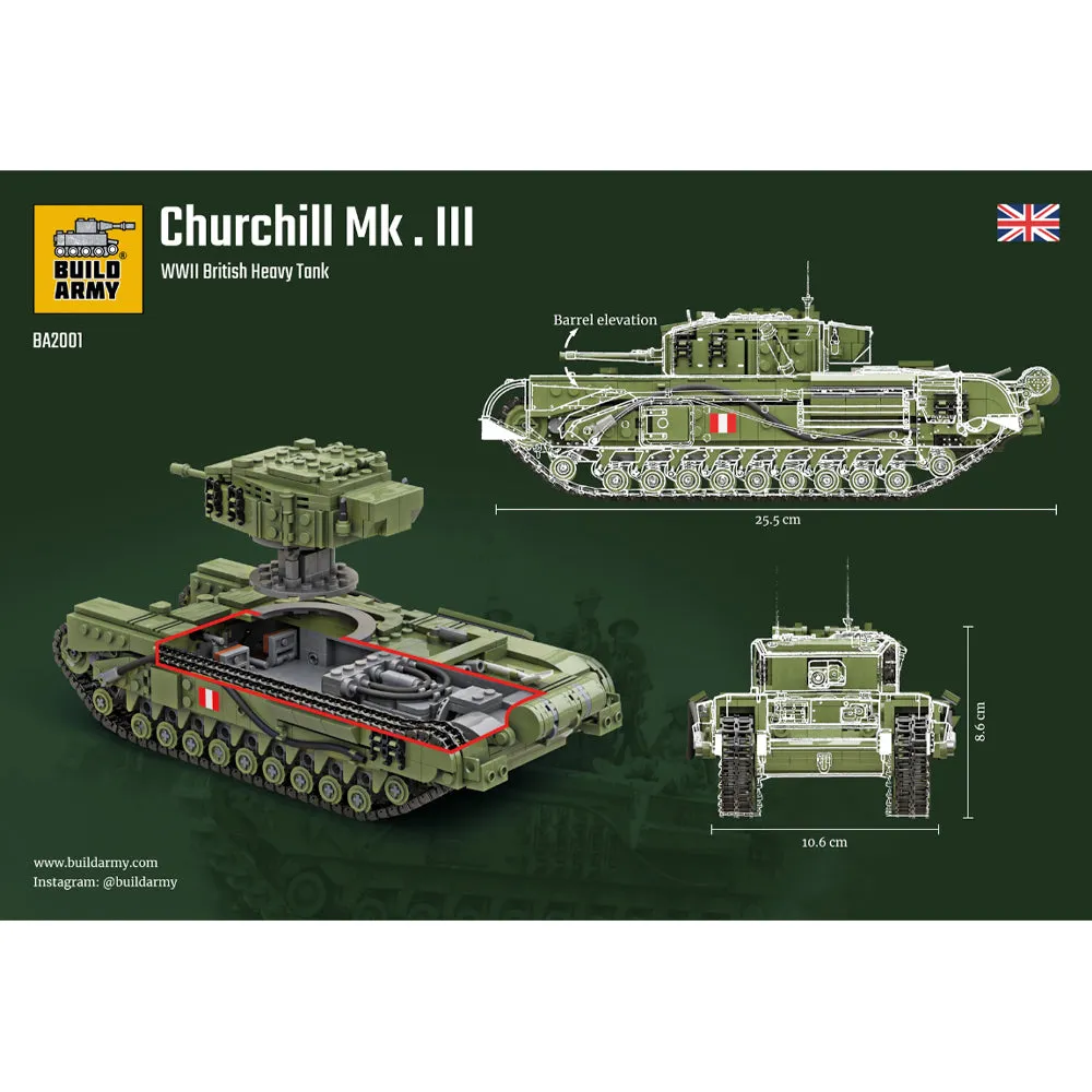 Build Army Churchill Mk.III WWII British Heavy Tank Model Brick Kit