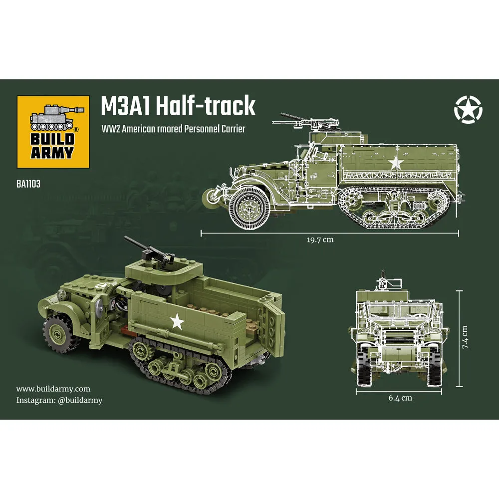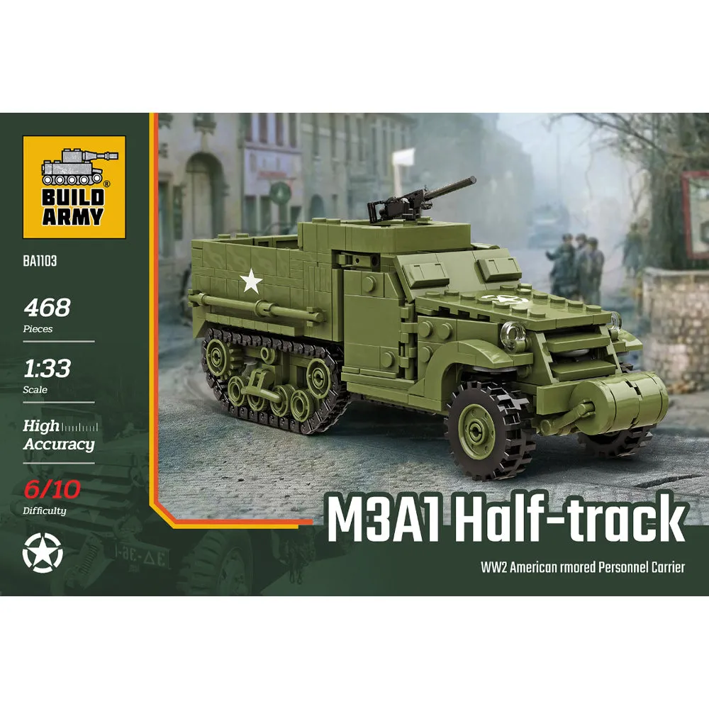 Build Army M3A1 Half Track WWII American Armoured Personnel Carrier Model Brick Kit
