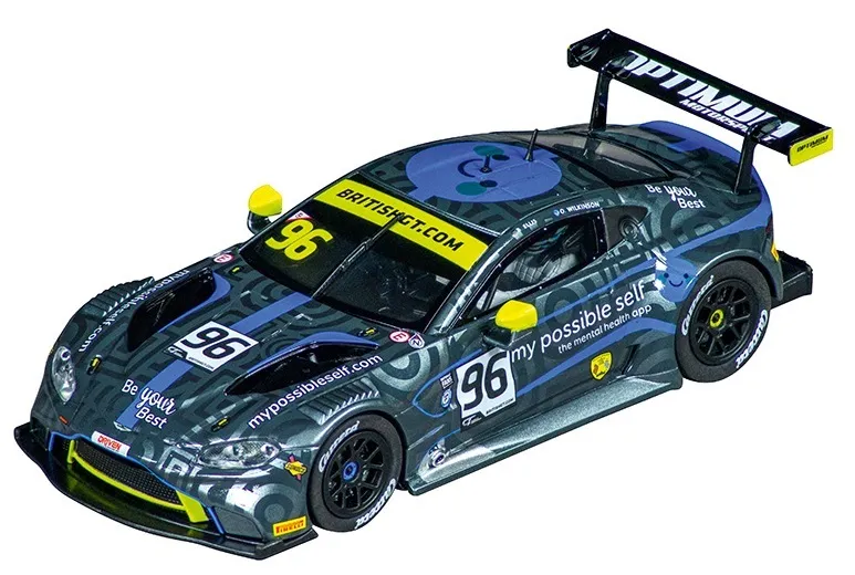 The new Aston Martin Vantage GT3 "Optimum Motorsport, No.96" races from the GT3 racetrack straight onto your Carrera track. The British speedster competed in the 2019 British GT Championship with the number 96 for the Optimum Motorsports racing team and finished ninth in the overall standings after all races. The stylish vehicle is a real all-rounder and impresses with top-class performance.
