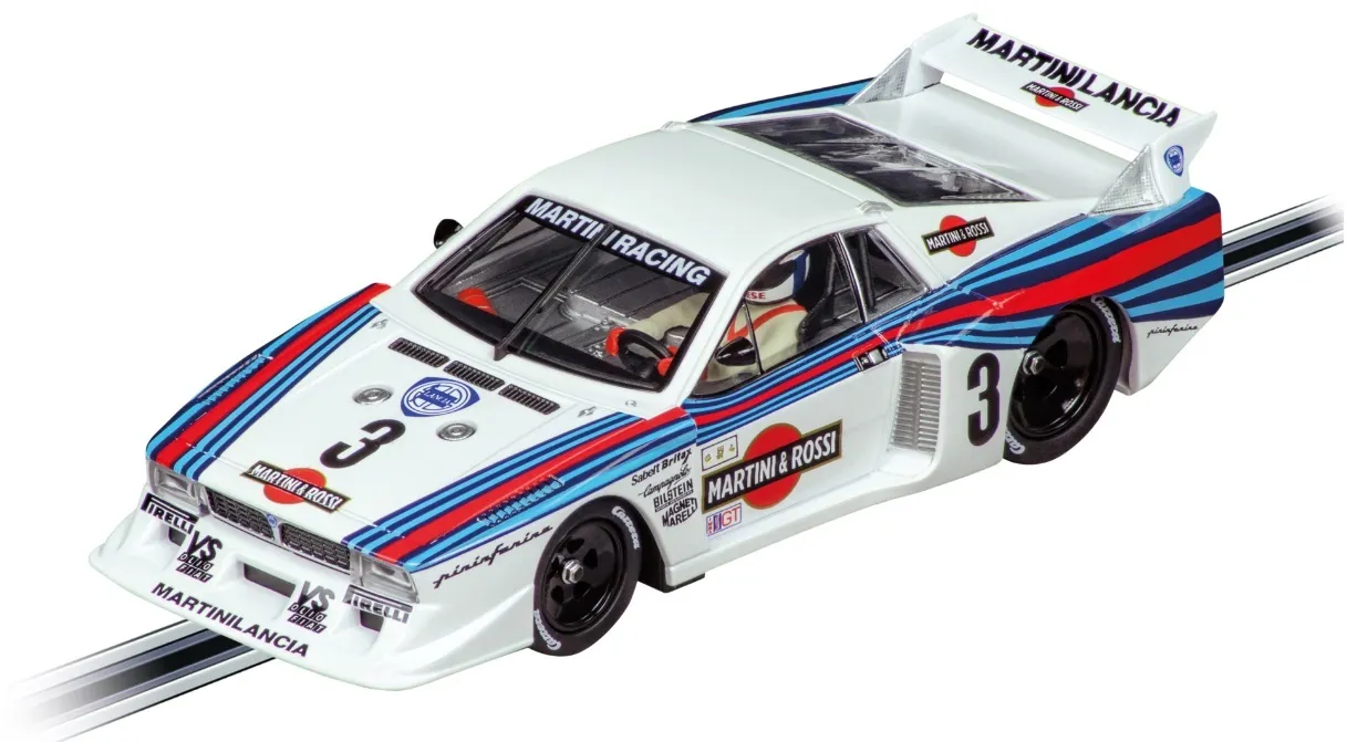 The Carrera EVOLUTION Lancia Beta Montecarlo Turbo "Lancia Martini Racing, No.3", 1981 brings a legend of classic racing to the home racetrack. On a scale of 1:32, the vehicle demonstrates why it is so popular on the big race track. In addition to a unique paint finish in white-blue-red, the Lancia Beta Montecarlo Turbo has fully functional front and rear lights. The Carrera car can also be converted to digital using a separate digital decode and offers unmistakable driving fun for young and old.