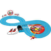 Racing fun and thrills with Mickey Mouse and Minnie Mouse! The new Carrera First set enables novice drivers aged 3 years and up to the speed around the 2.4m bright blue racing circuit with Disney’s beloved Heroes Mickey Mouse and Minnie Mouse. Ergonomically shaped handsets make controlling the cars Childs play for maxing the gaming fun. The circuit is particularly colourful and features eyecatching Micky Mouse décor elements, like the rising loop road. Longlasting playtime fun is guaranteed the battery powered circuit is easy to build take apart and pack away, so kids can take their heroes and career circuit with them wherever they go.