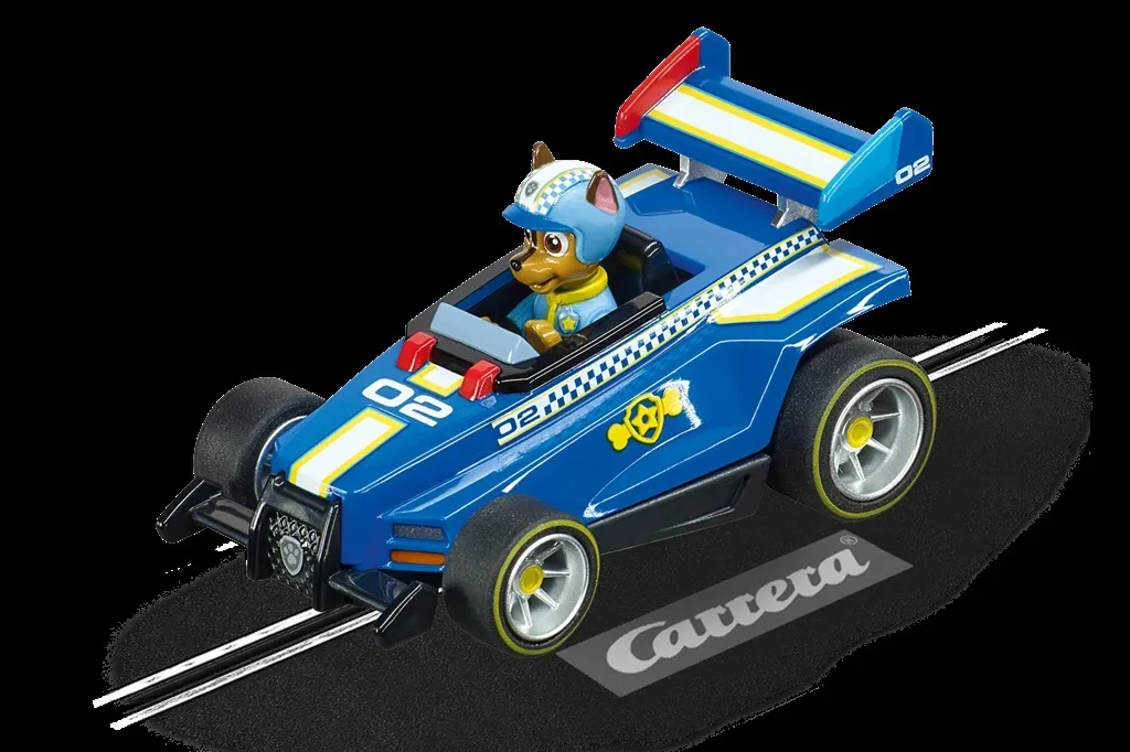 Dog fun on the Carrera GO!!! race track! The heroes from PAW Patrol are now making the racetrack safer and whizzing around the bends in their emergency vehicles. Just like in the popular TV series, the little dogs are also on the Carrera track with courage and joy. Dog action on the car racing track Now you too can take off with your little dog friends on the Carrera GO!!! racetrack and jet off on exciting missions with Chase in his blue police racing car. Whoever gets to the scene first wins! Together, you'll land safely on the winner's podium