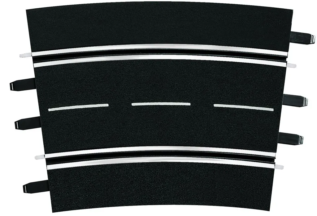 The set contains 12 track parts, each with an angle of 15°. Taken together, this results in a 180° corner, which is also suitable for the 8-lane extension of your Carrera race track. The track scale is 1/24, which means that the Carrera DIGITAL 124, Carrera DIGITAL 132 and Carrera EVOLUTION race tracks can be expanded with this set.