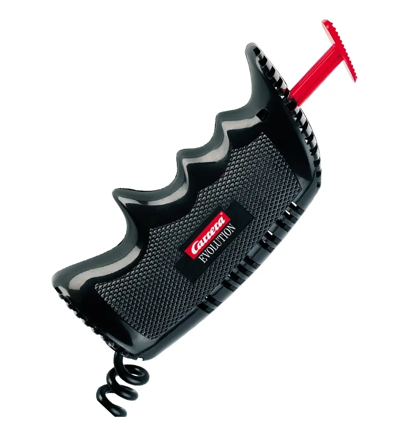 With the hand controller for the Carrera EVOLUTION track, you have the key to victory in your hand. The controller impresses at first glance with its modern, ergonomic design and fits perfectly in the hand. Simply press the button to accelerate and leave all your opponents behind you at top speed. If you press the button on the controller more slowly, the speed of your slot car is reduced accordingly. This allows you to master chicanes and other challenges with great sensitivity and put your skills to the test. The controller has a spiral cable and is suitable for the Carrera EVOLUTION track.