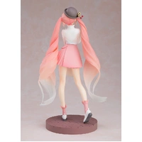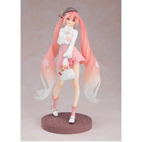 The plastic model stands at an impressive 23 cm! · Delicate sculpting and paintwork bring the lovely Sakura Miku, as illustrated by Rella, to life in beautiful detail. · Translucent parts provide a smooth gradient finish to the hair. · Base features a brick design. · Accessories such as the bag are also finely detailed.