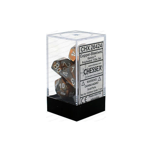 Chessex 26424 Gemini Copper-Steel w/white 7-Die Set