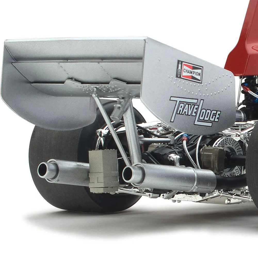 - The front wheel rims on the Lola feature sanded racing slicks. Note the intricate paint finishes to replicate the racing rims.