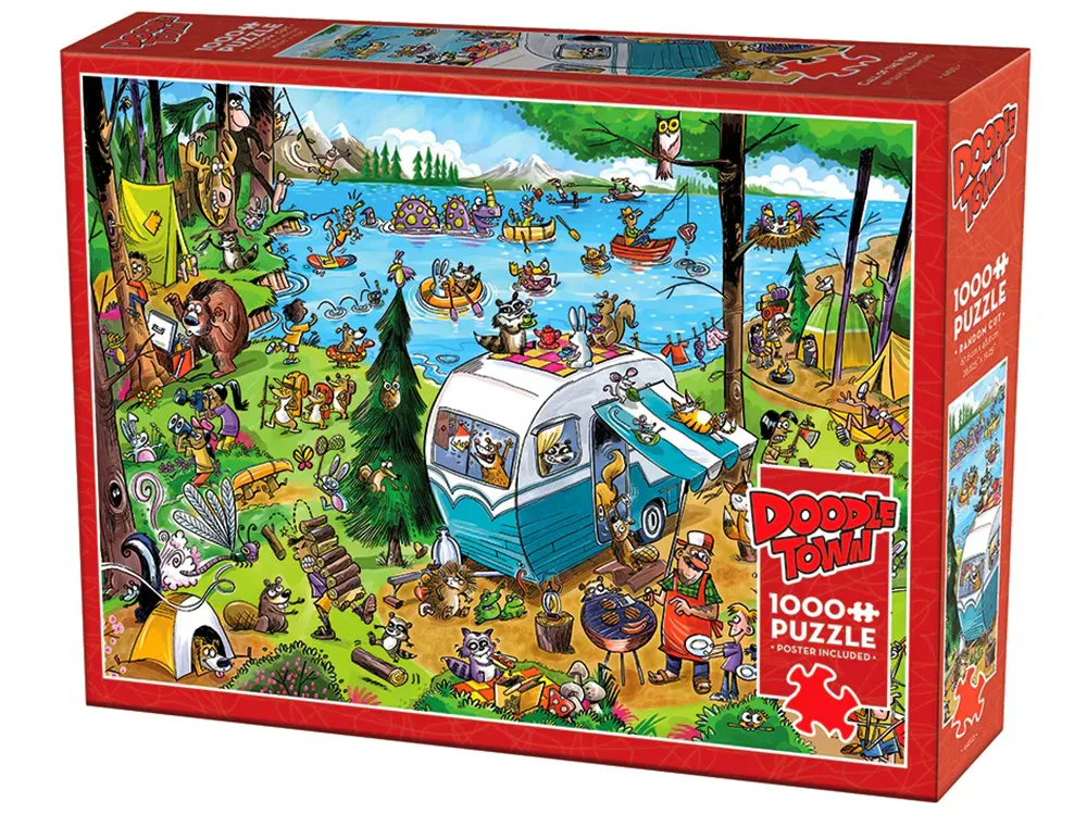 DoodleTown: Call of the Wild is a laugh-out-loud 1000 piece puzzle by award-winning cartoonist Dave Whamond. Join the fun as country critters let loose, creating chaos and mischief while campers try their best to blend in with the untamed wildlifewho are a little too wild! By the award winning cartoonist, Dave Whamond. Cobble Hill was founded in 2005 with a desire to bring loving, whimsical, high-quality images to puzzle enthusiasts around the world! Our puzzles have been described as nostalgic, lively, endearing, sweet, durable, and fine quality.