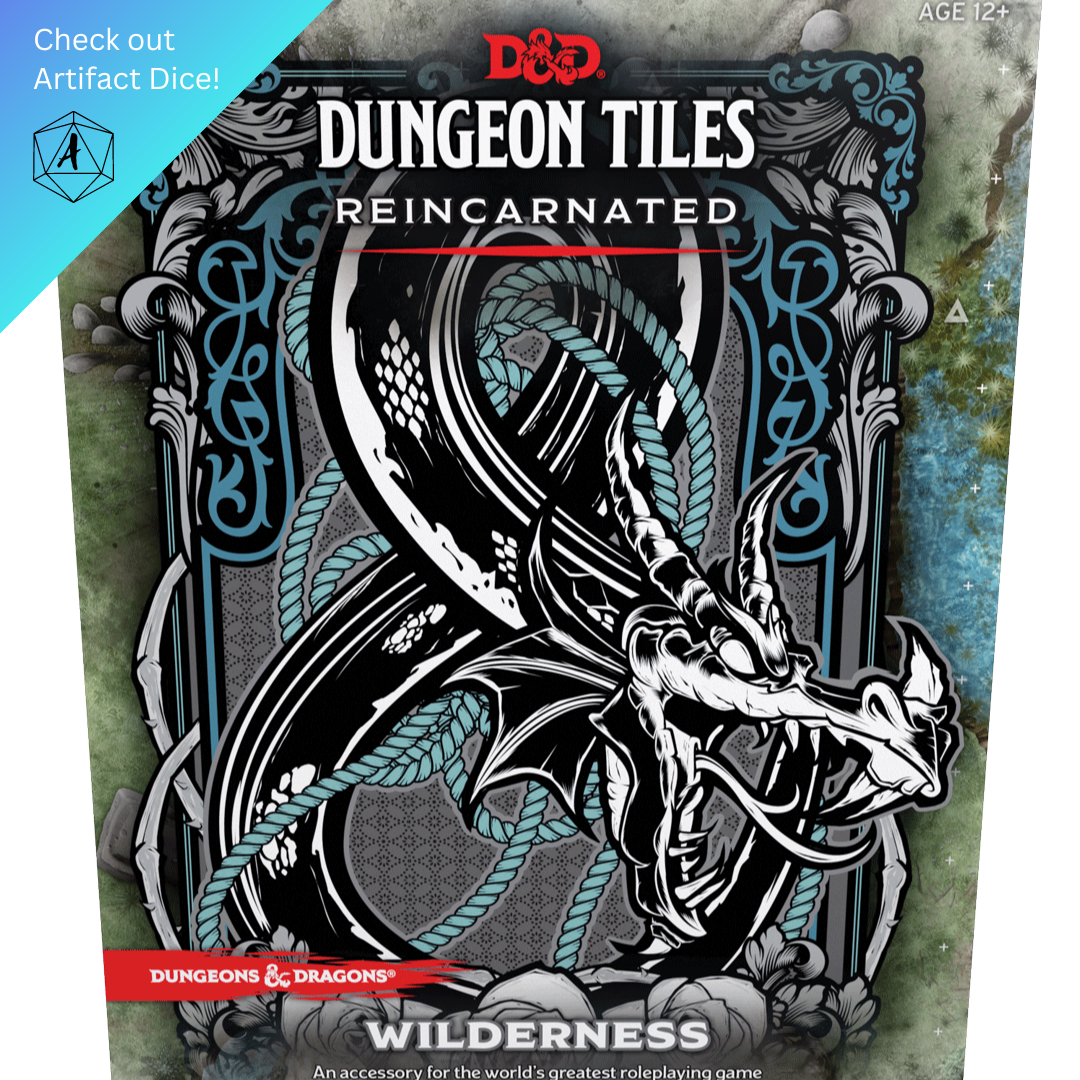 Complement with Artifact Dice ! Used to enhance the D&D tabletop experience, these tiles come with evocative terrain art featuring grasslands, ruins, sandy beaches, and other terrain elements that Dungeon Masters can use to build exciting encounters. These beautifully illustrated tiles can be combined to create customizable adventure Contents: 16 double-sided sheets of wilderness-themed terrain tiles
