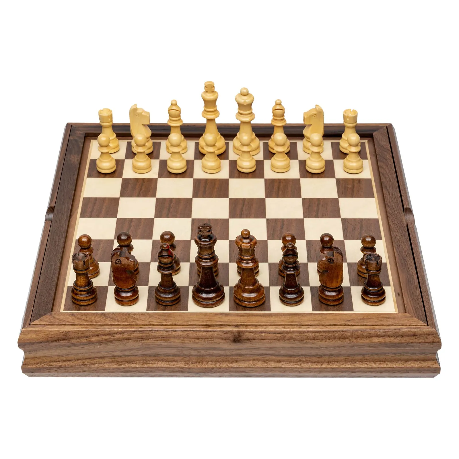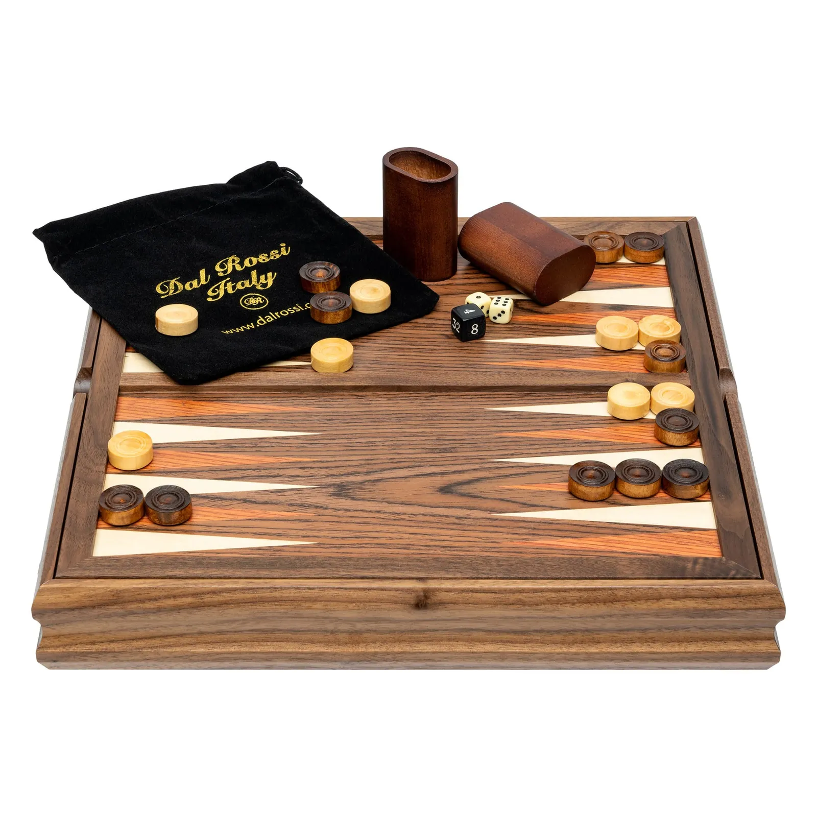 Dal Rossi Walnut fliptop Board Chess/Backgammon/Checkers 14in