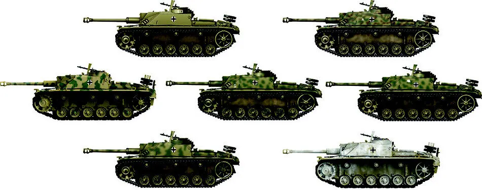 The StuG III (Sturmgeschutz III) was a German armored gun from the Second World War. The first prototypes of the vehicle were built in 1937, and serial production continued in the period 1940-1945, ending with the production of about 10,300 vehicles. The StuG III in the E version was powered by a single Maybach HL 120 TRM engine with 300 hp. It was armed (version E) with a 75mm short-barreled cannon. and 1 MG34 machine gun cal. 7.92 mm.