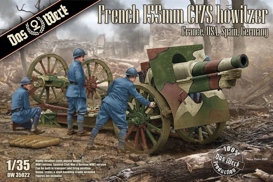 SKU: DWK35022 | Brand: DasWerk | Product: Das Werk 1/35 French 155mm C17S howitzer Plastic Model Kit [DW35022] This 1/35 scale model kit reproduces the French 155mm C17S howitzer. Assembly required; paints and glue not included.