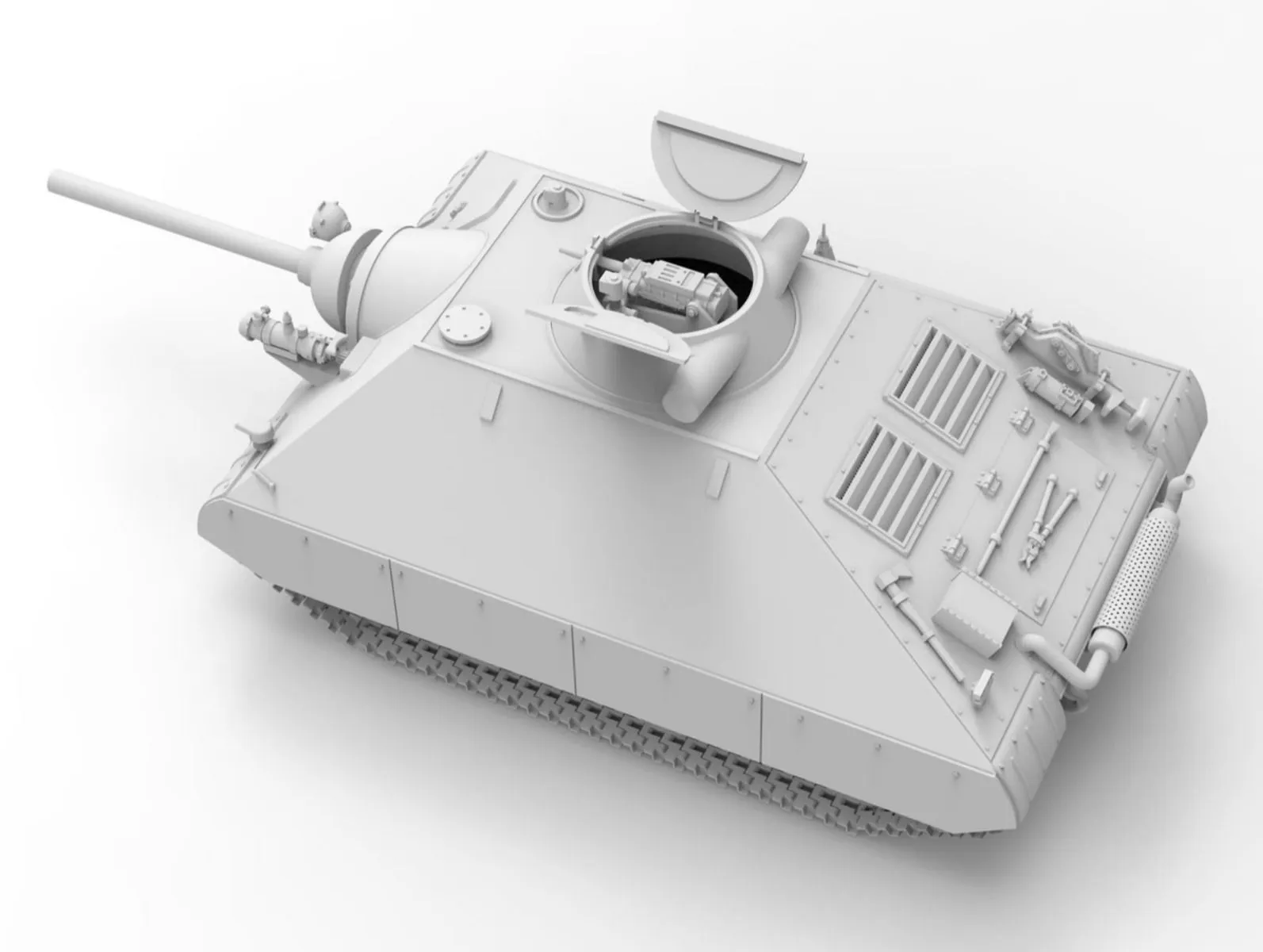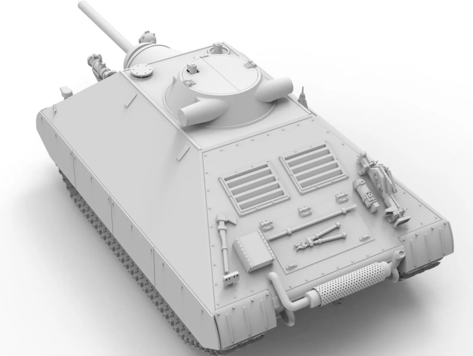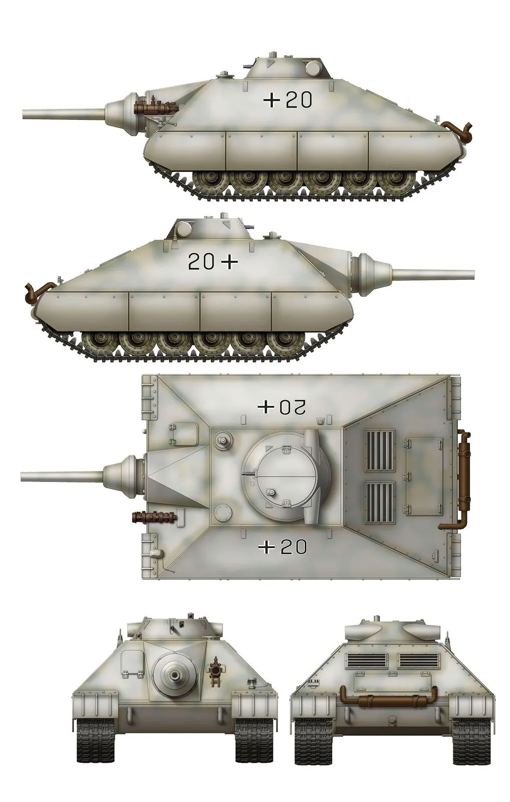This tank destroyer is something like the heavily armored cousin of the German Hetzer. Weighing in at approximately at 30 tons, this vehicle should effectively destroy enemy tanks.The project did not progress beyond the concept phase and was never built for the Wehrmacht.The model is exciting for anyone who would like to build What-If / Wehrmacht 1946 models.With this kit, either the version with the 10,5-cm-leichte Feldhaubitze 43 or the version with the 10cm Panzerabwehrwerfer can be built.The kit includes six different markings: