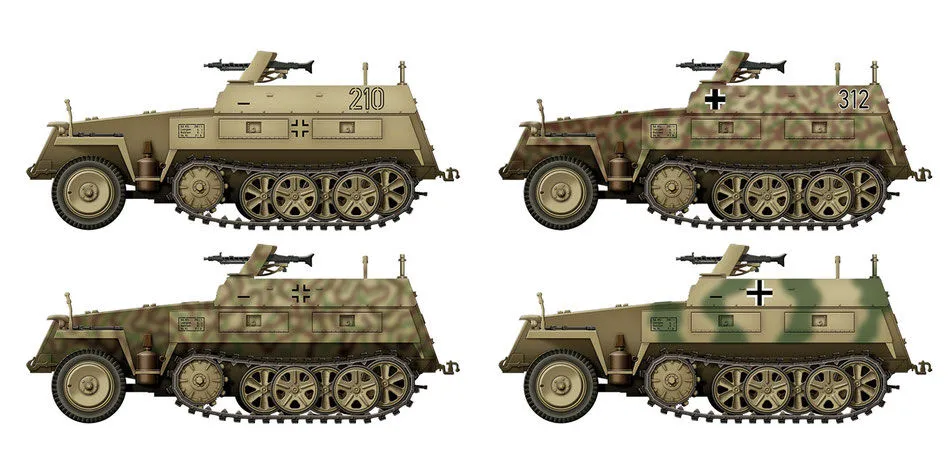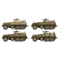 SKU: DWK35029 | Brand: DasWerk | Product: Das Werk 1/35 Sd.Kfz.250/1 Ausf.B Neu Plastic Model Kit [35029] This Das Werk 1/35 model represents the Sd.Kfz.250/1 light armored personnel carrier, a 5-ton vehicle manufactured by Demag beginning in June 1943 for the German Wehrmacht. The production vehicle accommodated six soldiers and carried two MG 34 machine guns with 2010 rounds of ammunition. Four additional manufacturers later produced variations of this design. The kit includes single track links, open hull interior and engine details, doors capable of being built in open or closed positions, weapons and accessories, and photo-etch parts for enhanced detailing. Four paint schemes and decal options are provided: Unknown Unit, Russia 1944; Staff Vehicle SS-Gruppenführer Carl Friedrich Graf von Pückler-Burghauss, Bohemia 1945; Panzer-Division, France 1944; and SS-Panzer-Division "LAH".