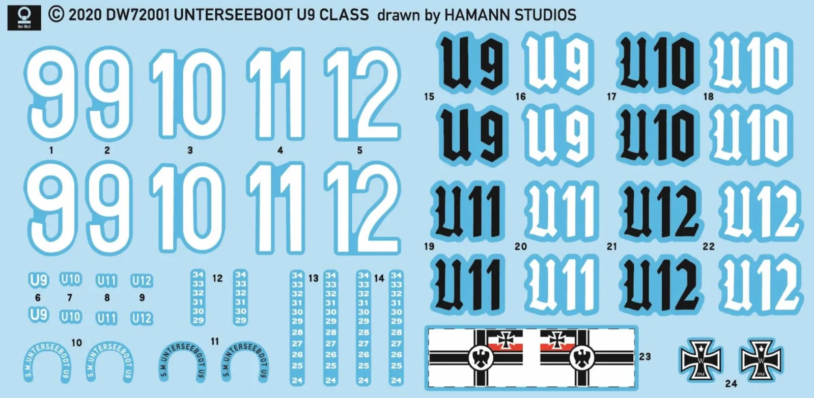 The U9 was commissioned as the first ship in its class in July 1908 and launched in February 1910.On September 22nd, 1914 U9 sank the three British armored cruisers HMS Aboukir, HMS Hogue and HMS Cressy one after the other and on October 15th the British armored cruiser HMS Hawke under the command of Kapitanleutnant Otto Weddigen. After that the boat U9 was allowed to carry an Iron Cross on the tower. Apart from U9, only the small cruiser SMS Emden received this honor during the WW1.