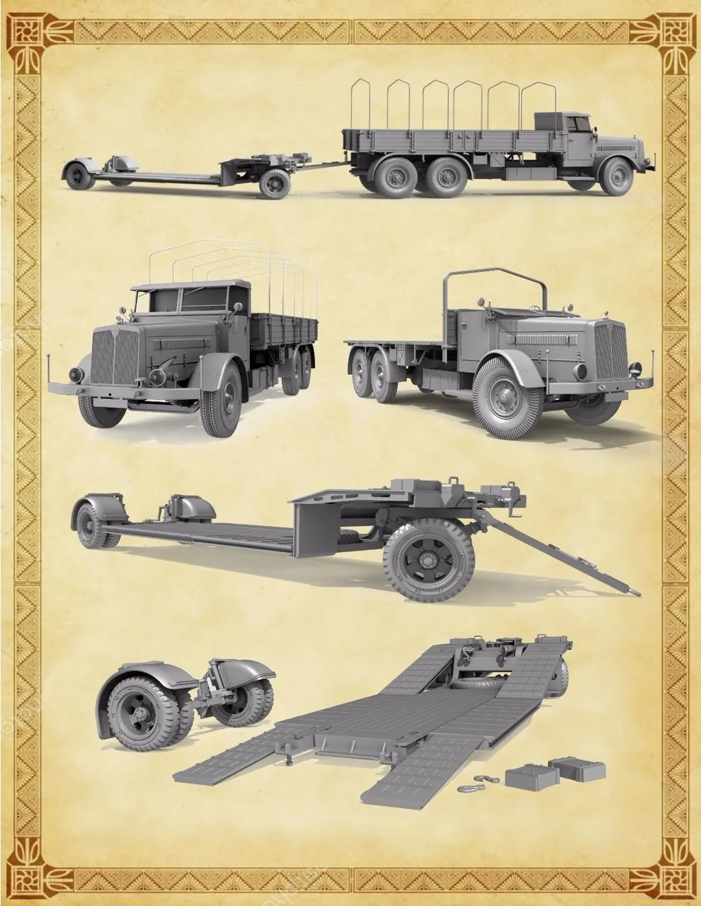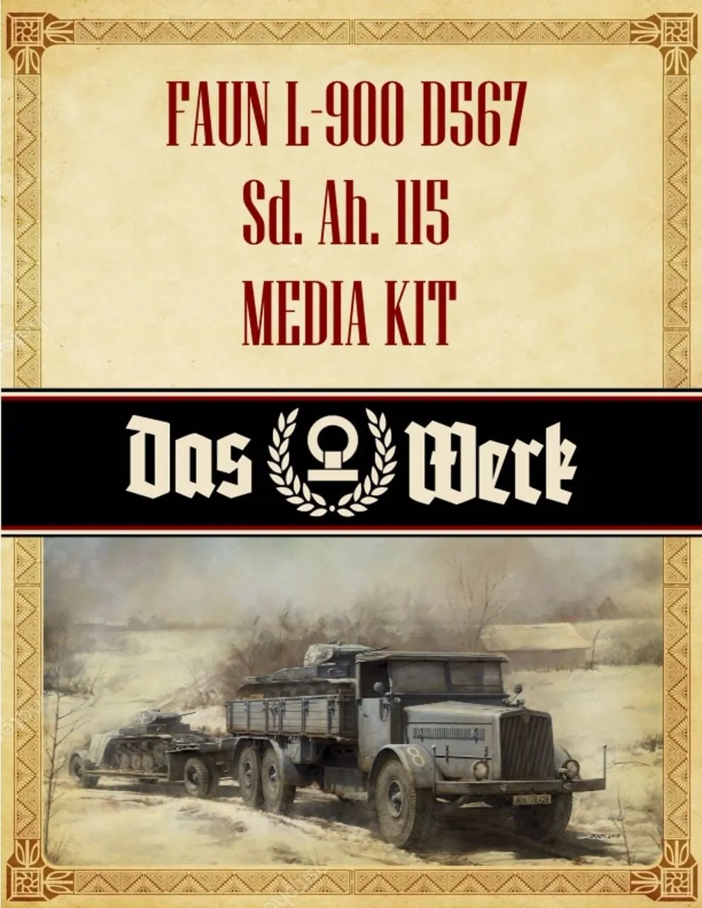SKU: DWK35003 | Brand: DasWerk | Product: Daswerk 1/35 Faun L900 incl. Sd.Ah.115 Plastic Model Kit 35003 This 1/35 scale plastic model kit combines a Faun L900 truck with an Sd.Ah.115 trailer. The truck body offers three loading configurations, an operational tail lift, and selectable open or closed door positions, plus a Sprigel assembly aid with metal profiles. The trailer features a removable rear axle and articulated ramps. The complete assembled model measures approximately 56 cm in length. Developed in collaboration with Customscale and Uschi van der Rosten for decal options. Assembly, paints, and adhesive are not included.