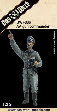 SKU: DWKF006 | Brand: DasWerk | Product: Daswerk F006 1/35 Komandant Salvenmaschinenkanone Plastic Model Kit One resin figure depicting a German WWII anti-aircraft officer/commander. Suitable for Das Werk anti-aircraft gun scale models or other modeling applications. This is a scale plastic model kit requiring assembly. Paints and adhesive sold separately.