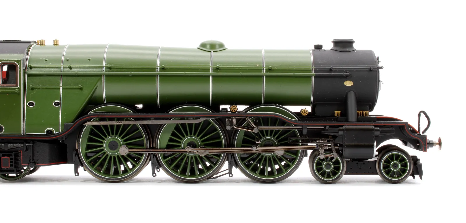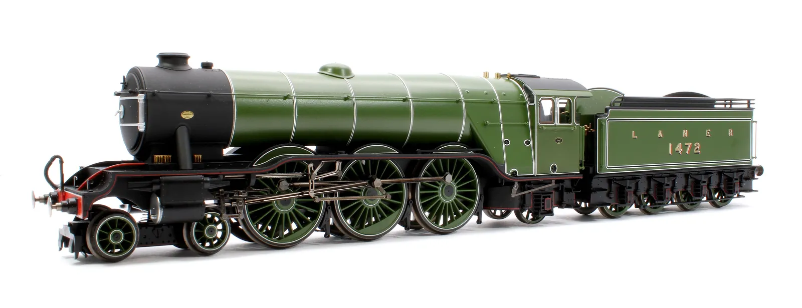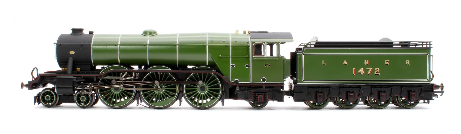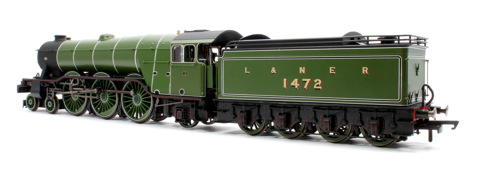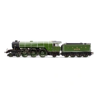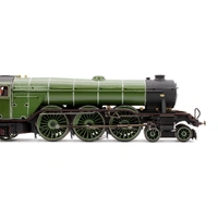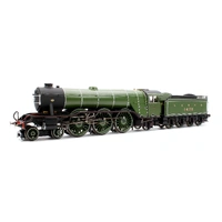 The largest of the constituent companies that would become the famous LNER was the GNR, and their Chief Mechanical Engineer naturally adopted the same position in the newly formed company, a man by the name of Herbert Nigel Gresley. As the brains behind the locomotive stock of the GNR, he had commissioned a new high speed passenger locomotive class to serve the GNR’s London to York main line. These became the A1 locomotive class, before a subsequent rebuild gave them the designation of the A3 class. One such example of this new and powerful class was named after the 10:00am service between London and Edinburgh, the named Special Scotch Express, or as it was renamed in 1924 the Flying Scotsman. The locomotive in question, number 1472, was originally outshopped from the GNR’s Doncaster Works as a class A1 with GNR colouring, lettering and numbering before being renumbered and named in 1924 to promote the LNER’s Flying Scotsman service. Despite its new name and number, 4472 Flying Scotsman herself did not actually pull the Flying Scotsman service until 1928, spending the first four years of its life undertaking promotional work and light duties for the LNER, such as being its star exhibit at both the 1924 and 1925 British Empire Exhibition. Relatively little of note would occur in the locomotives life and service for the next twenty years, with main changes consisting of her coupling with a corridor tender in 1928 (this allowed the locomotive to run non-stop between London and Edinburgh as the crew could be swapped via the tender mid run) before being reverted to the original tender in 1936. The game of LNER musical chairs did not stop here however, with the tender again being swapped in 1938 for a streamlined tender, with much the same appearance as a corridor tender without the corridor. Flying Scotsman would retain her streamlined tender until her withdrawal from British Railways service, numbered 60103, in 1963. In preservation, Flying Scotsman has captured the hearts of the nation, becoming recognised by even those with less than a passing interest in railways and railway history. Under various notable owners, including Alan Pegler and Sir William McAlpine, Flying Scotsman has undertaken tours of America and Australia with mixed success and under ownership of the National Railway Museum saw a six million pound overhaul, cementing her future as a main line stalwart. Alan Pegler, the original saviour of the locomotive passed away in 2012, with his ashes being thrown into Scotsman’s firebox on the Farewell Alan Pegler rail tour between King’s Cross and York in 2018. This Hornby Dublo model features the locomotive as it would have appeared at the time it entered LNER service in 1923. The locomotive is finished in a gleaming green paint which couples with the diecast boiler to create a finish close to that that could have been seen on the full size locomotive. The model features a strong 5 pole motor, cab detailing including crew figures, a dieca