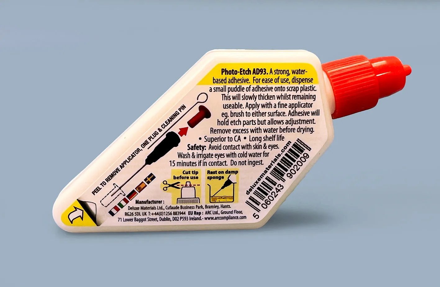 It is water based, easily spread, non-brittle and for bonding all types of photo etch to plastic and metal. Photo Etch Glue has several advantages over ca glue; it: has a long shelf life. allows adjustment. allows water clean-up. A 25g bottle of Deluxe Materials Photo Etch Glue AD93 retails at £8.00.