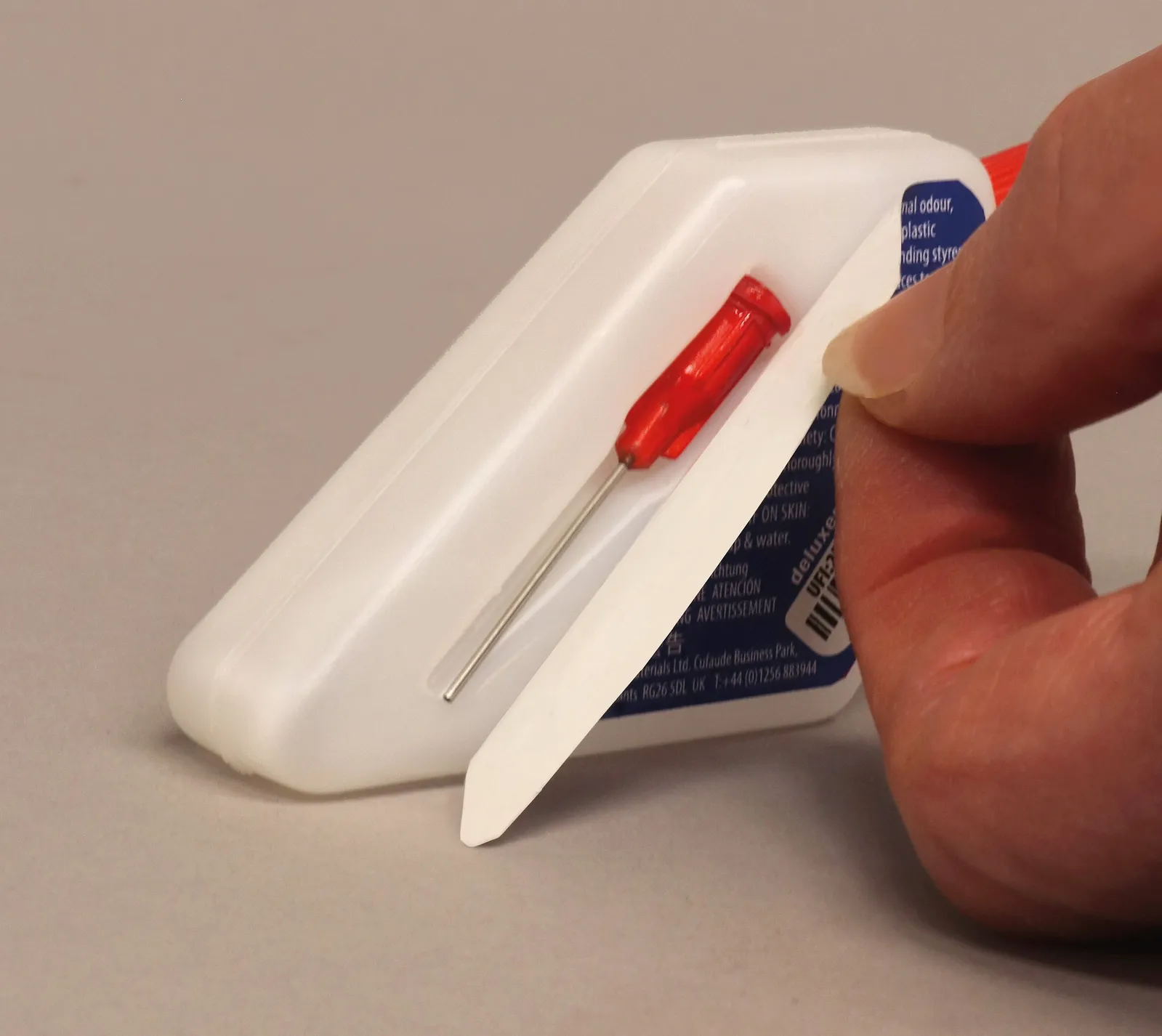 Precision Plastic Glue is packed in an easy to hold, clear plastic bottle for glue level visibility and an integrated detachable needle for safety.