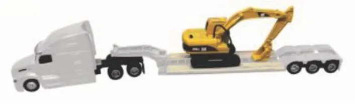Diecast Masters 1/87 White Peterbilt 579 Tractor With Lowboy Trailer and Cat 315C Excavator