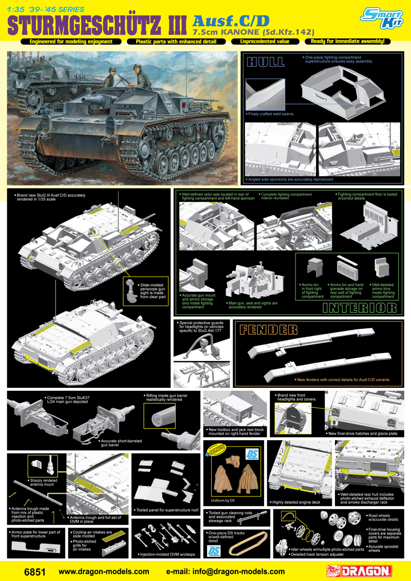 Dragon 1/35 Sturmgeschutz 7.5cm Kanone (Sd.Kfz.142) Ausf.C/D Plastic Model Kit