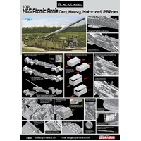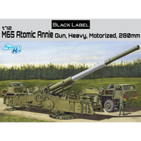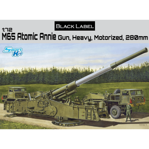 Dragon...s 1/72 scale kit of the M65 is brand new, which is understandable given that it...s the first modern-day kit of this weapon system. The set includes the cannon as well as the two tractor units, with modelers given the flexibility of depicting it in either transport or firing mode. The gun barrel can be displayed at different firing angles depending on the model-maker...s choice, and the weapon...s mechanisms are fully detailed. This particular small scale is very suitable for Atomic Annie because, even in 1/72 size, it...s still a whole 350mm long! Details are accurately replicated on the cannon and the associated truck units. Many will be astonished that Black Label has produced such a stunning subject, but that...s what the series is all about! Black Label is here pleasantly surprising model fans of the Cold War era.