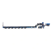 DetailsDiecast construction 56 rubber tyres and spares (8 tyres per row) Detailed hydraulic system including rams Replicated hydraulic power pack, tank and lines Rubber mud flaps Detailed operating controls Oversize signs Australian Number Plates Rear push point Air and Water Tanks Modular Construction with removable goose neck and rear bumper Widening decks with notched locking Rotating and sliding head assembly Raise lower gooseneck Opening engine covers Opening control covers Contra rotating steering Linkable steerable between modules Working Suspension Functioning loading ramps with chains