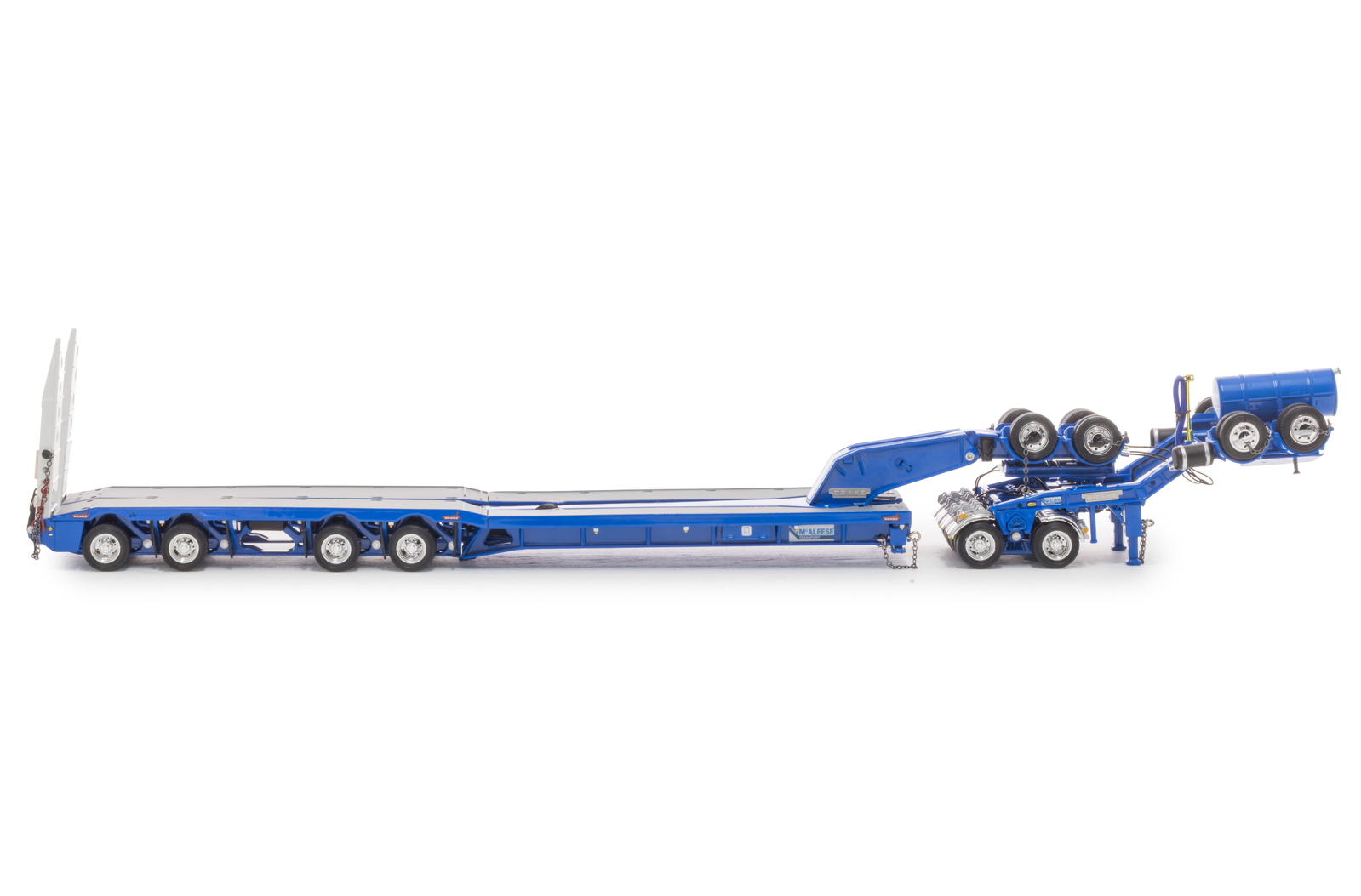 DetailsDiecast construction Detailed hydraulic system including rams Replicated hydraulic power pack, tank and lines Rubber mud flaps Detailed operating controls Oversize signs Australian Number Plates Air and Water Tanks Linkable steerable between modules Working Suspension Functioning loading ramps with chains