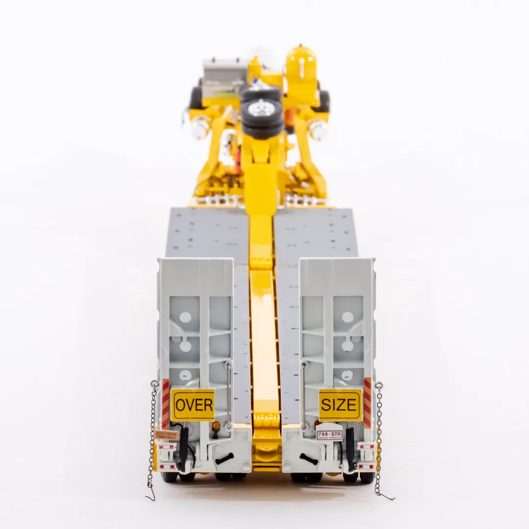 Scale: 1:50 - Make/Model : Drake 7x8 Steerable Trailer - Colour: Chrome Yellow - Details: - Diecast construction - 56 rubber tyres and spares (8 tyres per row) - Detailed hydraulic system including rams - Replicated hydraulic power pack, tank and lines - Rubber mud flaps - Detailed operating controls - Oversize signs - Australian Number Plates - Rear push point - Air and Water Tanks - Modular Construction with removable goose neck and rear bumper - Widening decks with notched locking - Rotating and sliding head assembly - Raise lower gooseneck - Opening engine covers - Opening control covers - Contra rotating steering - Linkable steerable between modules - Working Suspension - Functioning loading ramps with chains - Manufacturer: Drake Collectibles