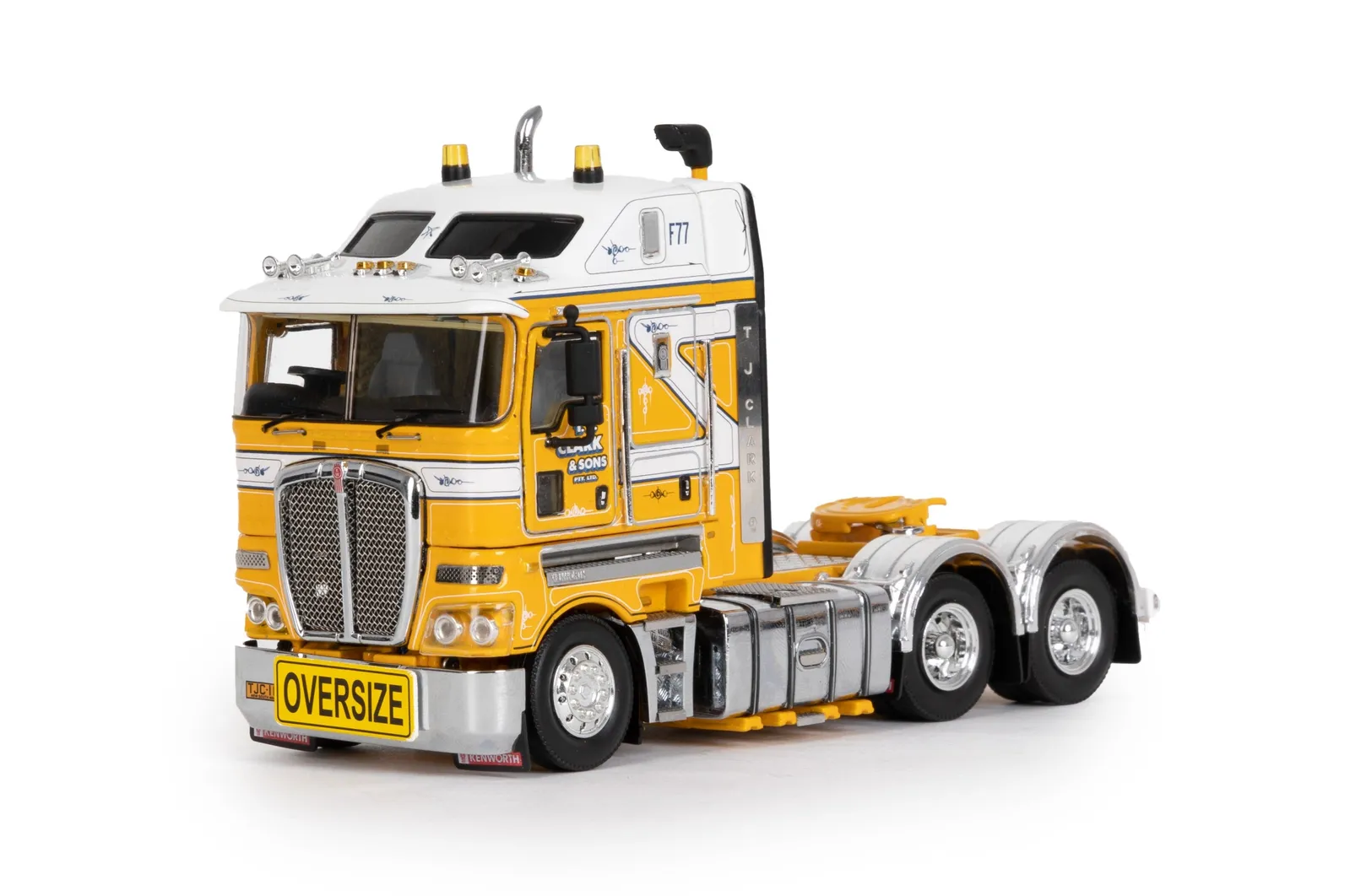 Scale: 1:50 - Make/Model : Kenworth K200 2.3 Cabin - Colour: TJ Clark & Sons - Manufacturer: Drake Collectibles