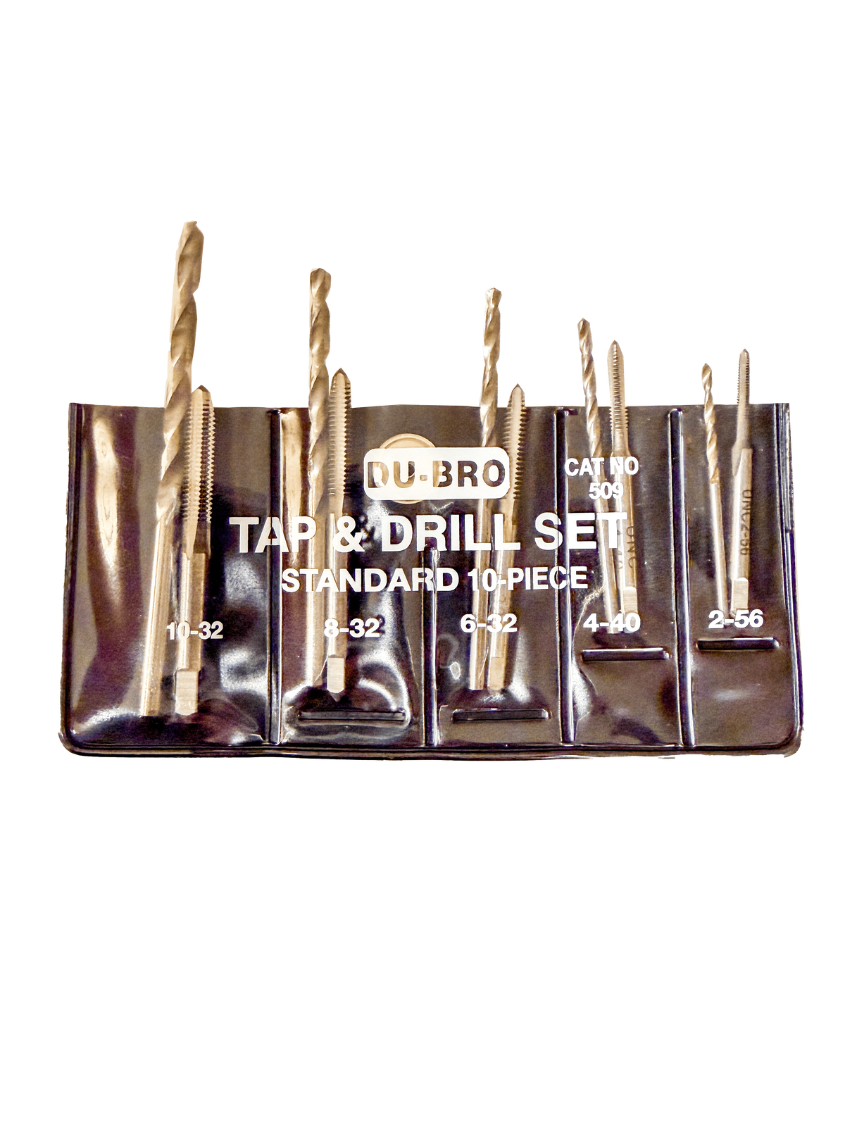 The DU-BRO Standard and Metric Tap & Drills are designed to take the guesswork out of tapping and drilling for RC building, repairs, and precision hobby work. These taps and drills are sold in matched pairs , ensuring you always have the correct drill for the proper tap size. For builders who want accuracy, simplicity, and dependable results, these sets provide an easy and frustration-free solution. You can purchase the taps and drills individually as matched pairs or choose from DU-BRO’s convenient 10-piece assortments , which come organized in a durable vinyl storage pouch. These assortments give you the most commonly used tap and drill sizes for RC airplanes, cars, boats, robotics, small machines, crafts, and general workshop projects. Standard Tap & Drill Set Sizes