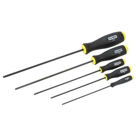 The DU-BRO Standard and Metric Ball Wrenches are essential tools for RC builders, hobbyists, and anyone who works with socket head screws in tight or hard-to-reach areas. Designed for comfort, durability, and versatility, these ball wrenches allow you to turn screws from multiple angles—making assembly and maintenance much easier. With a ball end capable of engaging screws at up to a 25° angle , you can reach places that straight drivers simply cannot. Each wrench features an ergonomic, two-component handle with a tough inner core and a cushioned rubber exterior for a secure, non-slip grip. The anti-roll design keeps the tools from sliding off your workbench, while the durable materials ensure long-lasting performance. DU-BRO stands behind their quality, offering a lifetime warranty on every ball wrench. Several set options are available to match your needs: