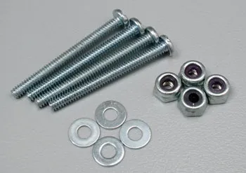 The DU-BRO Bolt Sets With Lock Nuts provide strong, dependable hardware for RC aircraft, cars, boats, and many other hobby projects. Made from aircraft-quality, high-strength steel , these bolt sets give builders confidence when assembling critical components where reliability truly matters. Each package includes everything you need for secure, vibration-resistant fastening: four bolts, four flat washers, and four lock nuts . These bolt sets are ideal for mounting landing gear, engine firewalls, servo trays, control horns, wheel pants, and many other parts that experience stress and vibration. The included nylon-insert lock nuts help prevent loosening during flight or high-RPM operation, making them a smarter choice than standard nuts when durability is important. The flat washers protect your mounting surfaces and help spread the load, reducing the chance of wood compression or damage to thin materials. DU-BRO’s consistent machining and quality control ensure that every bolt, washer, and nut fits correctly and holds tightly. Available in several sizes and weights to match different project needs: